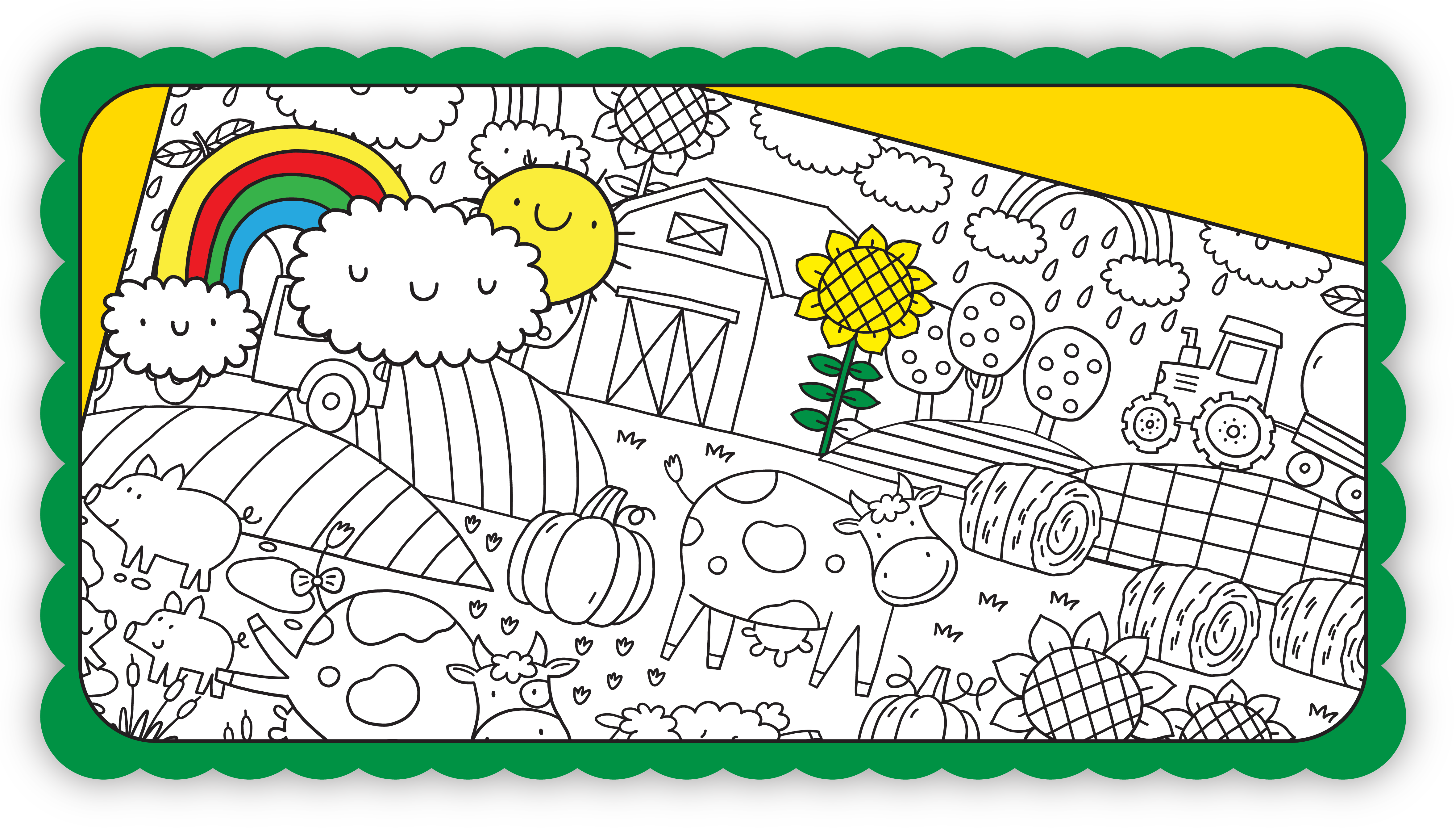- 20 x 30cm reusable silicone colouring mat in our Farm Village design.