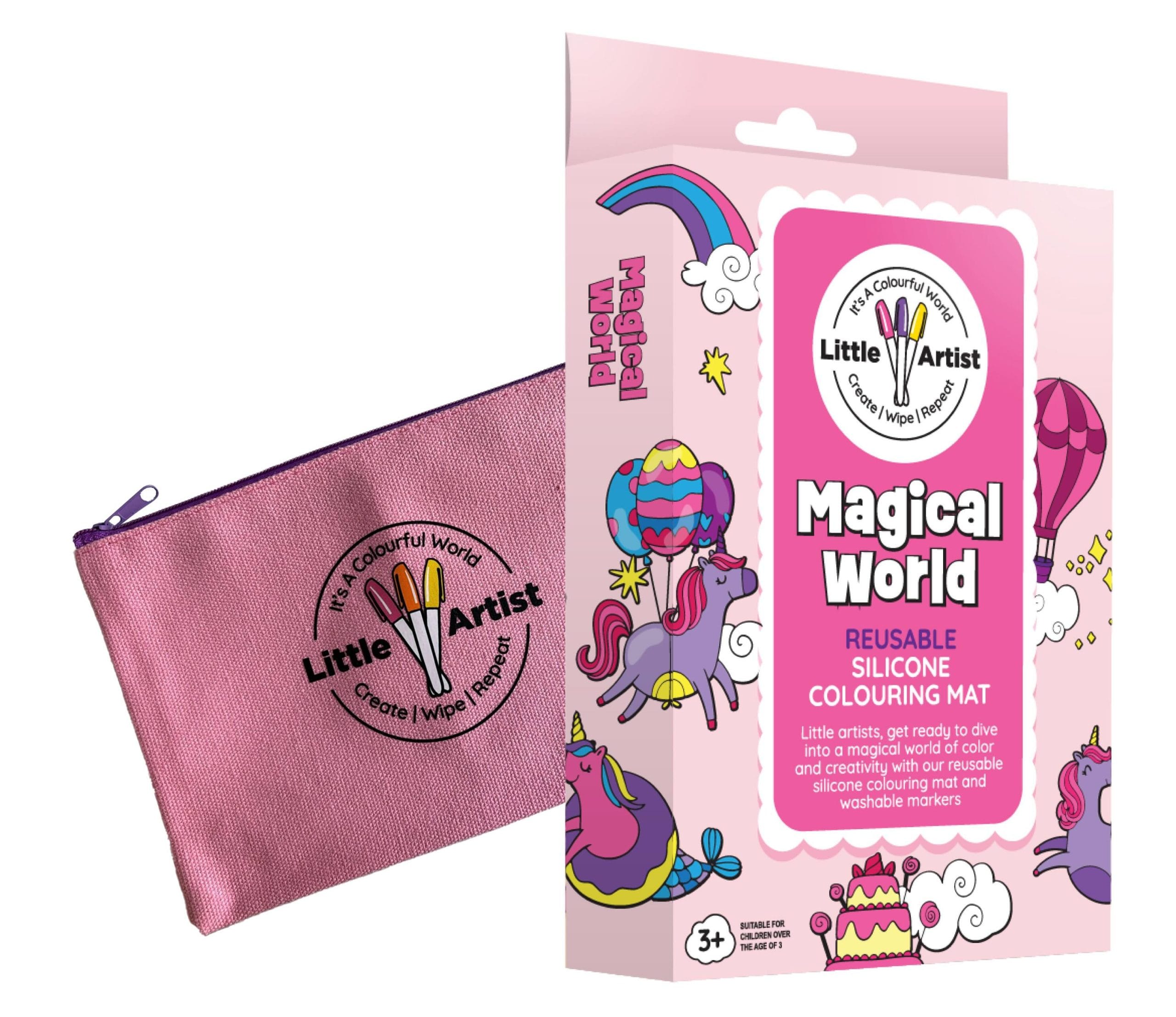 - 20 x 30cm reusable silicone colouring mat in our Magical World design.